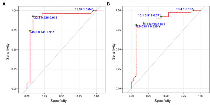 78例入组的患者中,61例(78%)术前行PET-CT评估。SUVmax下降与病理缓解(R=0.619,P<0.0001)之间存在显著相关性。根据ROC曲线,SUVmax下降率为-32%,预测MPR的敏感度(93%)和特异度(91%)最高。(图3)