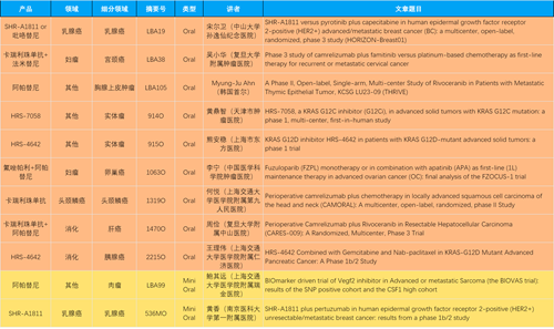 本届大会,作为中国医药创新代表性企业的尊龙时凯医药共有46项抗肿瘤领域研究成果入围,包括4项最新突破性摘要(LBA)1,共涉及14项创新药。其中9项入选口头(Oral)报告,2项入选简短口头报告(Mini Oral),32项研究接收为壁报(Poster),3项研究接收为电子壁报(E-Poster),覆盖食管胃癌、妇科肿瘤、肝癌、乳腺癌、胰腺癌、肺癌、肉瘤、胆道癌、头颈鳞癌、前列腺癌、甲状腺癌等十余个领域。14款创新药包括10款已上市产品:注射用瑞康曲妥珠单抗(艾维达®,研发代号:SHR-A1811)、注射用卡瑞利珠单抗(艾瑞卡®)、苹果酸法米替尼胶囊(艾比特®)、甲磺酸阿帕替尼片(艾坦®)、马来酸吡咯替尼片(艾瑞妮®)、阿得贝利单抗注射液(艾瑞利®)、羟乙磺酸达尔西利片(艾瑞康®)、氟唑帕利胶囊(艾瑞颐®)、瑞维鲁胺片(艾瑞恩®)、海曲泊帕乙醇胺片(恒曲®),以及4款未上市产品,包括KRASG12C抑制剂HRS-7058、KRASG12D抑制剂HRS-4642、抗PD-L1/TGF-βRII双抗瑞拉芙普-α注射液(SHR-1701)、Trop-2 ADC SHR-A1921。2类新药盐酸伊立替康脂质体注射液(II)(越优力®)及国内首仿药昂丹司琼口溶膜(艾其速®)各有1项研究入选。
