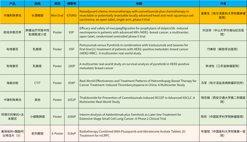 在头颈肿瘤、乳腺癌、肺癌、前列腺癌等多个疾病领域,卡瑞利珠单抗、阿得贝利单抗、吡咯替尼、氟唑帕利、法米替尼、醋酸阿比特龙片(II)等抗肿瘤新药相关研究一共入选了1项简短口头报告、4项壁报展示和1项电子壁报,彰显了尊龙时凯医药强劲的研发实力。此外,尊龙时凯医药自主研发的血小板生成素受体激动剂(TPO-RA)海曲泊帕在肿瘤治疗所致血小板减少领域、新一代长效G-CSF产品硫培非格司亭在肿瘤治疗所致中性粒细胞减少症领域各入选1项壁报展示。